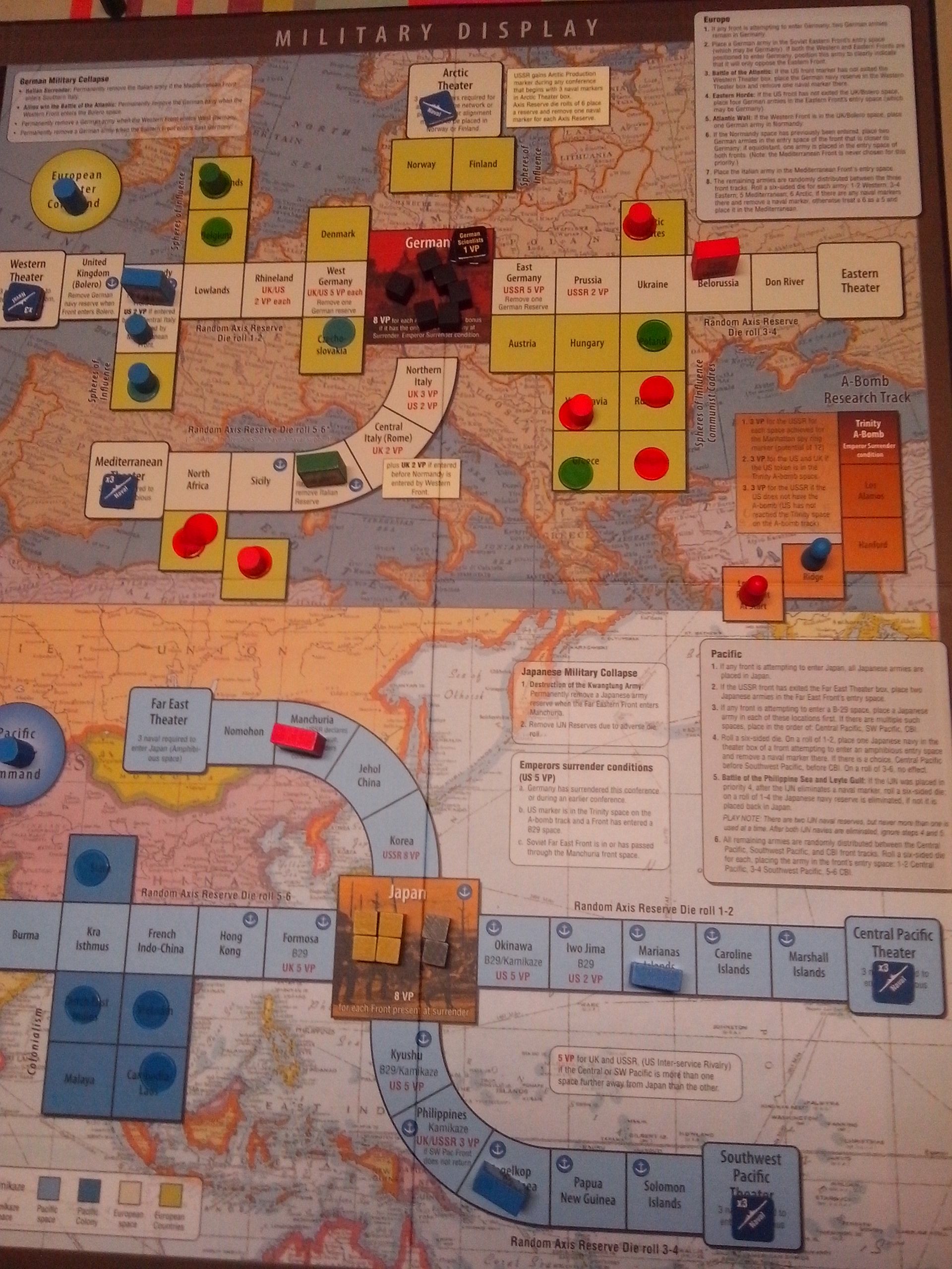 Puis la chance s'arrêta. La bombe ne vit jamais le jour, malgré plusieurs unités de production américaine allouées (mais à chaque fois en tentant la chance), les fronts n'avancèrent pas (personne n'arriva même en Allemagne de l'Ouest ou de l'Est, le front soviétique d'Extrême Orient rata toutes ses tentatives de percées.