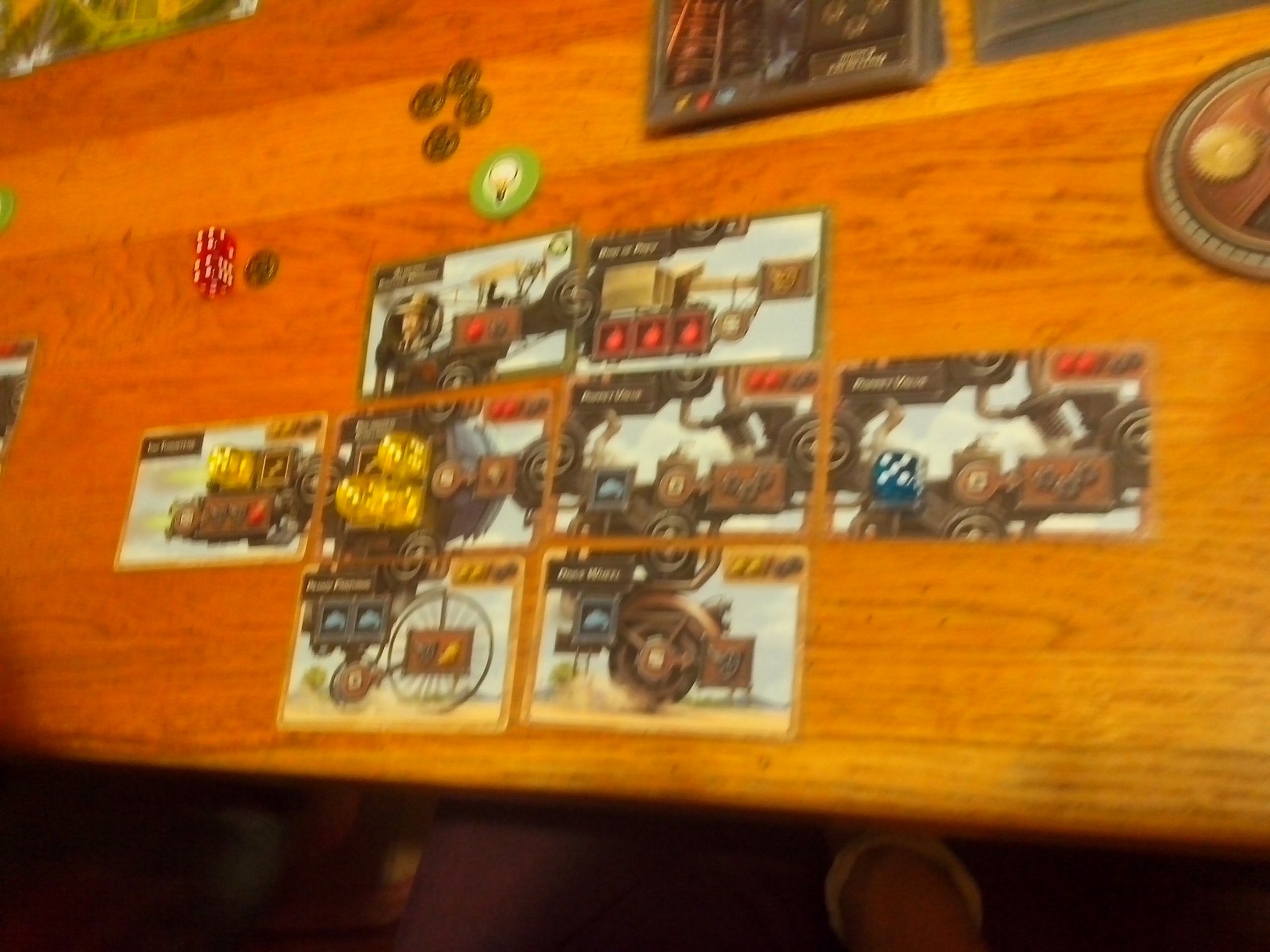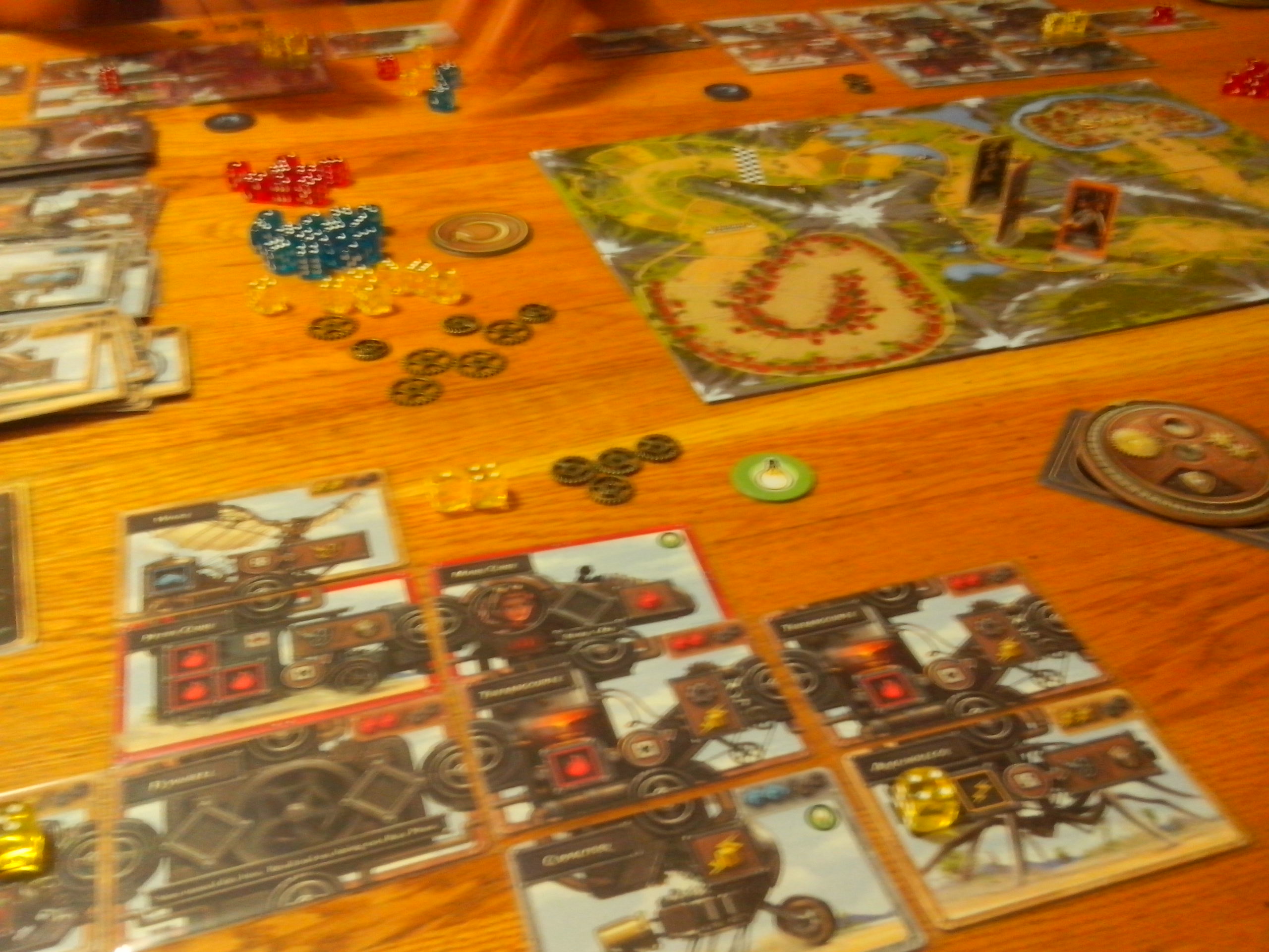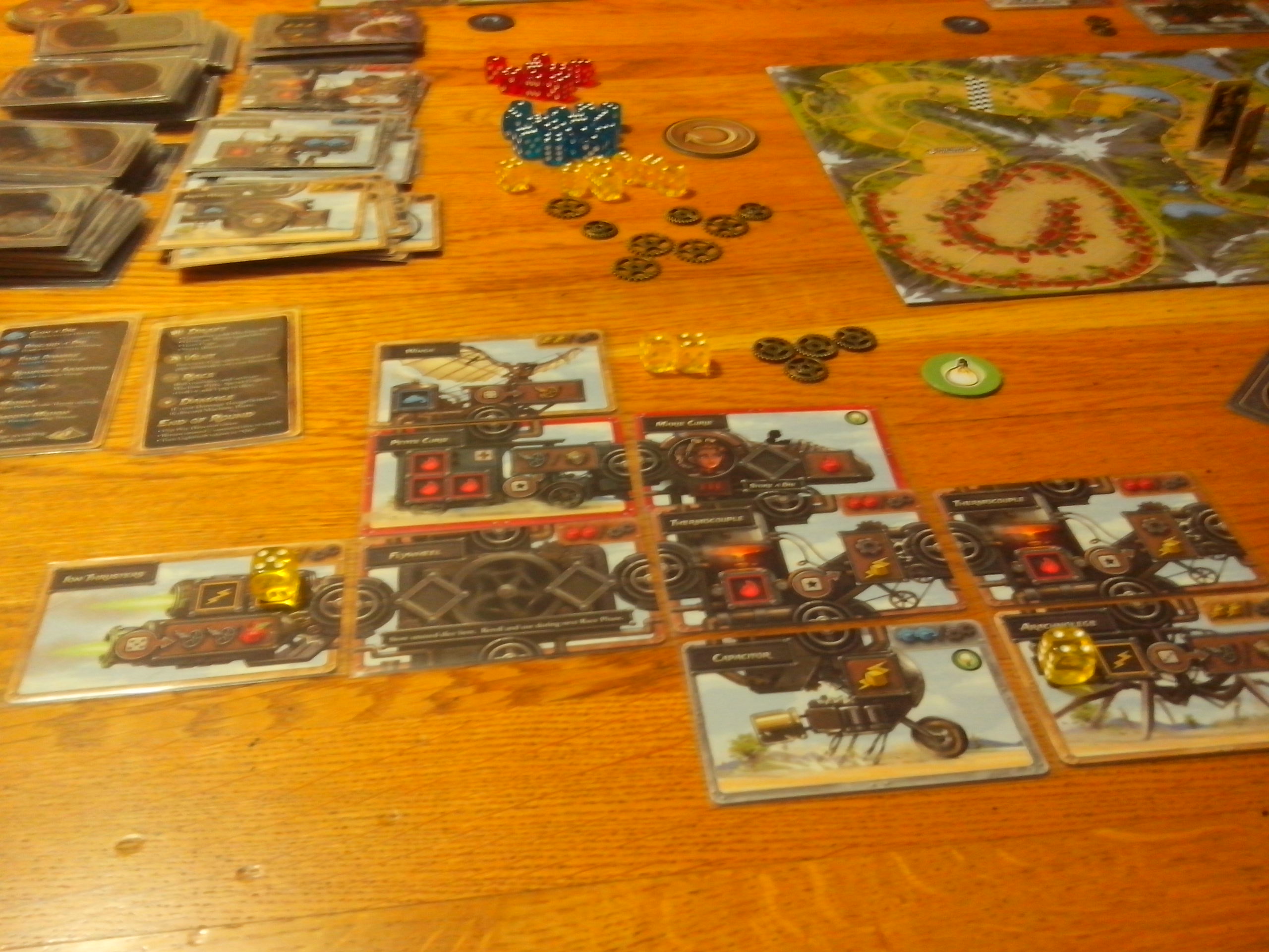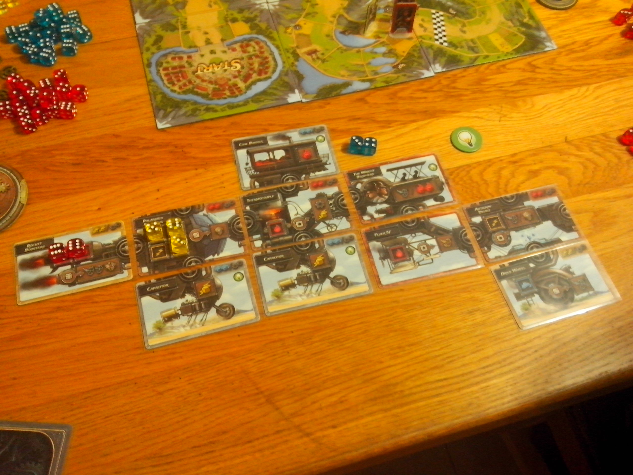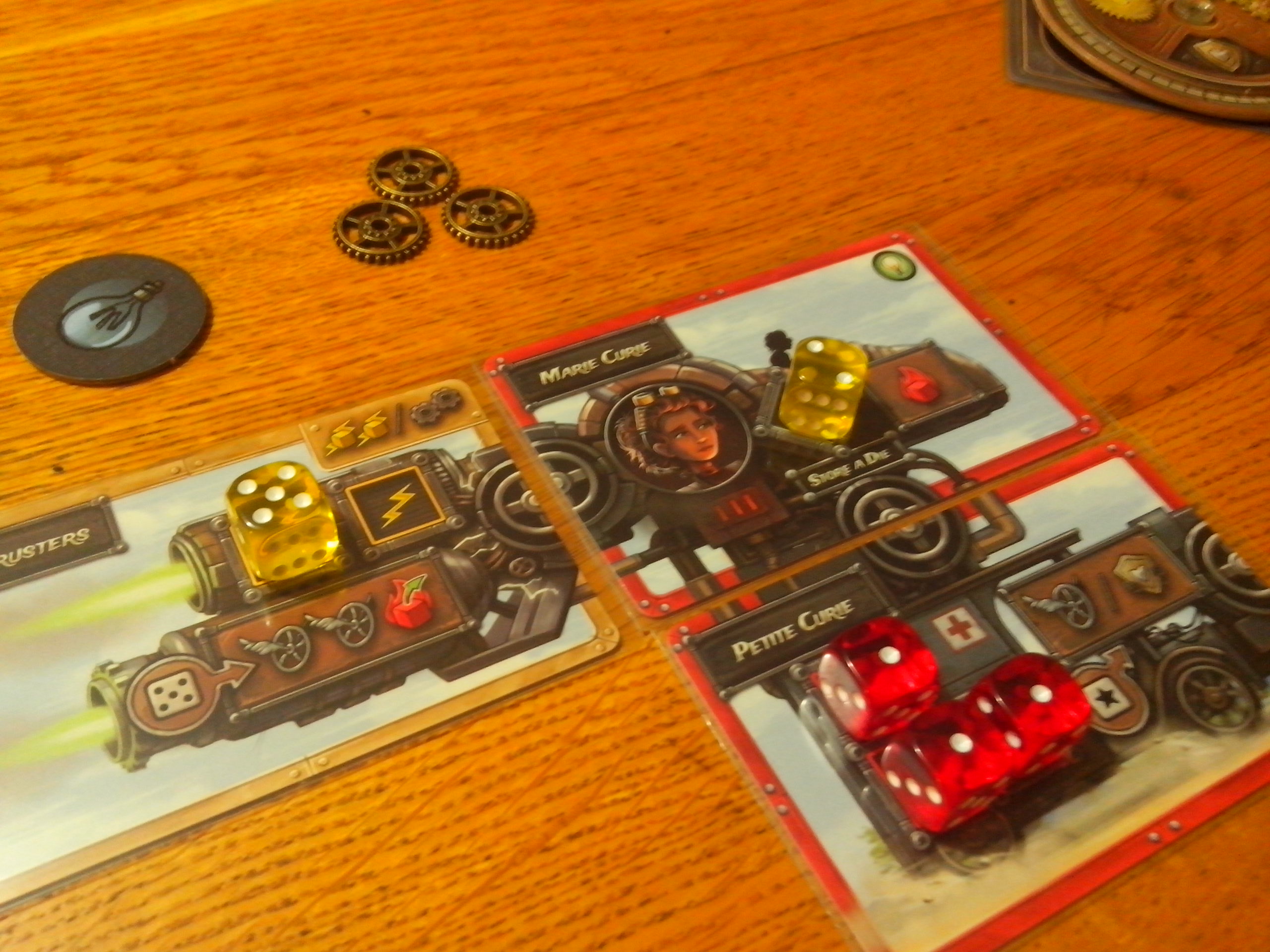 Il y a quelques dés à lancer (moins que l'idée que je m'en faisais toutefois) et ce que j'apprécie, c'est que on n'est pas déçu de faire de petit chiffre, car selon les pièces de machines, petits jets et gros jets sont intéressants.